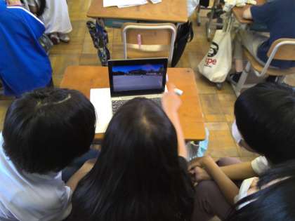 体育で行っているリレーで、自分たちのバトンパスの様子を確認しました。受け取るときに助走ができているか、前を向いてバトンを受け取ることができているか、コーナーを曲がるときの姿勢はどうなっているかなど、チームで確認し合いました。