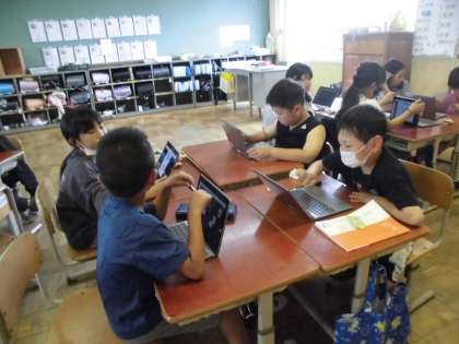 「こまを楽しむ」の学習で、自分のお気に入りのこまを3つ友達に発表しました。感想もGIGA端末を使って伝えました。
