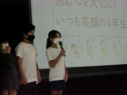 今日の児童朝会は、なかよしグループで集まりました。今年度初めてのなかよしグループでの集まりで、自己紹介をしたり、遊びの相談をしたりしました。これからの活動が楽しみですね。また、児童朝会の中で代表委員から学級目標の発表もありました。全校児童の前での発表は緊張したと思いますが、しっかりやり切ってくれました。かっこよかったよ!