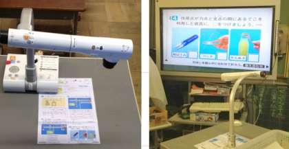 手元のプリントを簡単に大きく拡大して、大型テレビに映し出すことができます。
