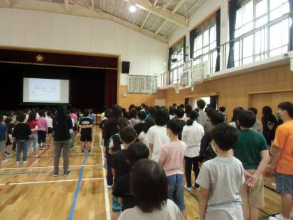 今年度初の朝会がありました。校長先生から人権の話をしていただきました。12このお話覚えていますか?とても良い姿勢で聞けてた4年生の皆さんです。人を大切にする素敵な人になろうね。