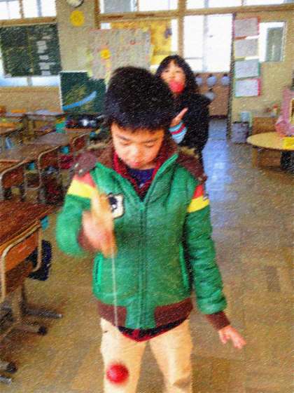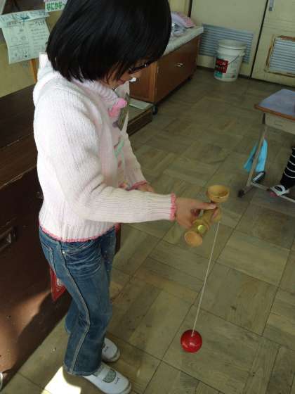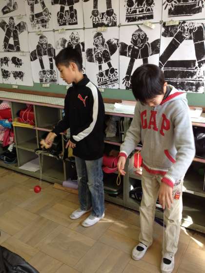 そこで教室に昔遊びの道具を置いたところ,大人気!!