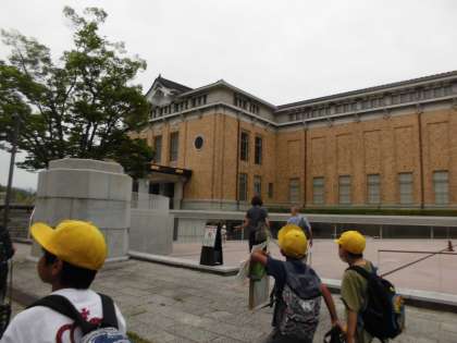 午前中は、岡崎公園に行きました。公共施設が多い地域ですので、どのような公共施設があるのか、実際に見て歩きました。ロームシアター京都、みやこめっせ、美術館、図書館、動物園…。様々な公共施設を見つけることができました。