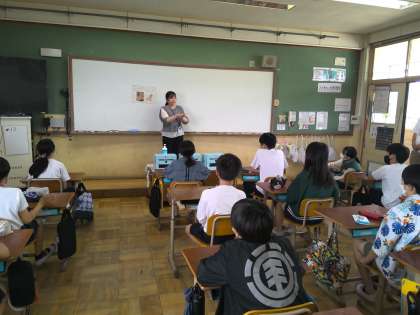 6月の発育測定の前に、手洗いについてのお話を聞きました。その後、クリームとライトを使って、きれいに手洗いができているかを調べました。きれいに洗ったつもりでも、思ったより汚れていたという声が多く聞かれました。これから、あまり洗えていなかった部分に気を付けて、手洗いをしていってもらえたらと思います。