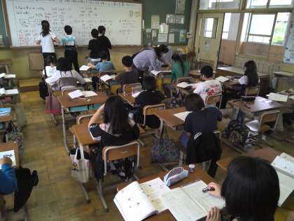 小数のわり算の学習が進んでいます。わる数を整数になるようにわり算の性質を使うことに気付き、練習問題を繰り返しました。商が小数になる計算が少し苦手な子もいましたが、これからもコツコツ練習を重ねて自分の力を伸ばしていってほしいと思います。