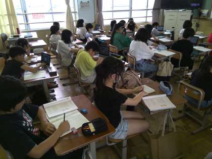 小数のわり算の学習で、□を使った式で表し、□の求め方を考えました。
