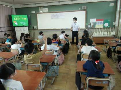 伏見警察署のスクールサポーターの方に来ていただき、いつも正しい行動ができるためにどんなことが必要かをお話しいただきました。自分がされたら、傷ついたり困ったりしないか。大切な人をがっかりさせないか。人に迷惑をかけないか。法律や決まりを破っていないか。の判断4原則を確かめることが大切でしたね。「先生に怒られるから」ではなく、自分で判断できるようになろうね。
