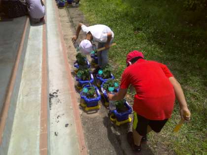 ミニトマトがどんどん育ってきました。ものさしで大きさを測ってみて成長を実感していました。引き続き大切に育てていってほしいと思います。