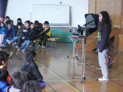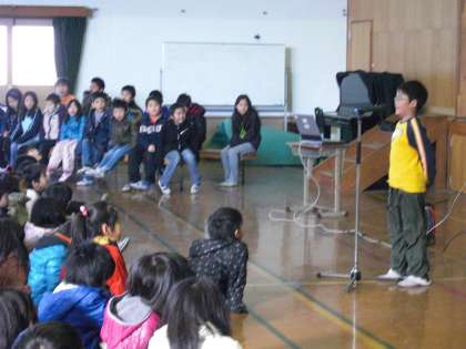全校の前で発表するというのはすごく緊張するもので,聞いている側もその緊張感がひしひしと伝わってきます。