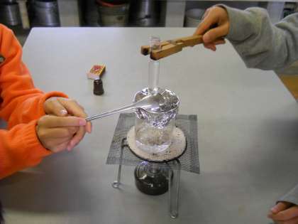 今日も実験です!前回水を沸騰させたときにでてきた泡の正体と、減った水のゆくえを調べました。