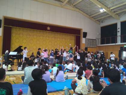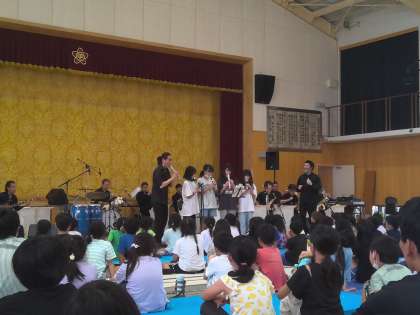 ジャズオーケストラの演奏を鑑賞しました。後半の部では、6年生も、リコーダーでの演奏もしくは手作りマラカスの演奏でオーケストラと共演しました。鑑賞も演奏も全力で楽しむ姿がすてきでした!暑い中、お手伝いに来てくださった保護者の方々、ありがとうございました。