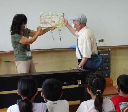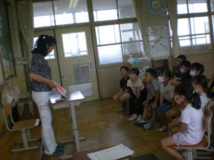 6月の学校運営委員会企画推進委員会でお願いをした、図書ボランティアさんですが、早速地域の方からご連絡をいただき、今日の読み聞かせを行っていただきました。