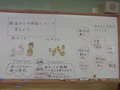 「おとなになるっていうこと」という絵本の読み聞かせから、女子と男子に起こる体の変化や、成長には個人差があること、またトランスジェンダー(体と心の性が違う)についても触れました。子どもたちにとっては初めて聞いたこともあったかと思いますが、真剣に読み聞かせを聞き、思ったことや考えたことをたくさんワークシートに記入していました。