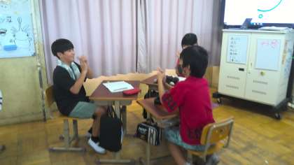 国語の学習で、「友達と考えを伝え合い、考えを広げよう。」というめあてで、3人1組のグループで対話をしました。これからの学校生活で一番大切にしたいこととその理由を考え、お互いの考えを聞き合いました。グループのメンバーを変えて数回行うことで、たくさんの考えにふれることができ、考えを広げたり深めたりすることができました。