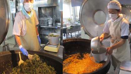 にんにく・しょうがの香りもほのかにして、みそやしょうゆの甘辛い味つけが、ごはんに合います。子どもたちもたくさん食べていました。 ほうれん草ともやしのごま煮は、ごまの風味と野菜の食感が楽しめます。ごはんもしっかり食べていましたよ。