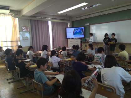 社会科の学習で水産業のさかんな地域について学んでいます。今回は、班ごとにテーマを決めて、調べたことを発表し合いました。「消費者に届けるまでにどのような人たちがかかわっているのか」「魚を育てる取組」「魚をどのように加工しているのか」などについてスライドにまとめて発表しました。