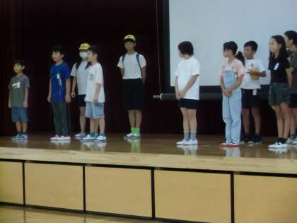 全校で集まり、なかよしグループで並び、朝会・児童朝会がありました。4年生もグループごとに並んでいるので、散り散りでしたが、一生懸命校長先生のお話や委員会からのお話を聞いていました。代表委員の二人もステージの上でしっかり活躍していました。