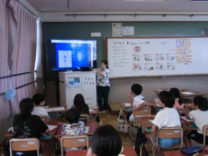 栄養教諭の北山先生と一緒によく噛んで食べることについて考えました。よく噛んで食べるといいことがたくさんありましたね。給食時間にはランチルームで実践しました。「ひみこのがいいぜ」覚えておこうね。