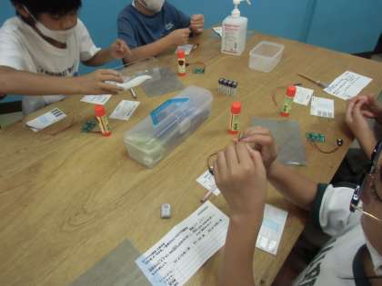 午後からは京都まなびの街生き方探究館に移動しての学習です。まずは工房学習から。世界に一つだけの温度計づくりをさせていただきました。少し難しい作業もありましたが、みんな上手に作り上げましたね。