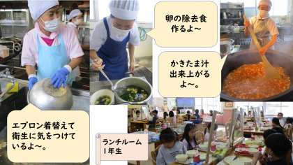 今日の献立は、ごはん・牛乳・筑前煮・かきたま汁です。筑前煮には、今が旬のごぼうやれんこんを使っていて、歯ごたえも楽しめます。ごぼうが「かたいよ〜」と言っていた1年生もいましたが、奥歯でしっかりかんで食べて、かむ力もつけてほしいなと思います。