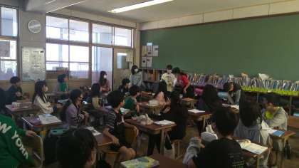 国語「漢字の広場」の学習で、グループで分担して物語を書きました。教科書の絵と漢字を使うという条件の中、「どんな設定にする?」と、楽しそうに相談しながら書いていました。できた物語を発表し合うと、同じ条件でも、グループによってかなり違う物語になっていました。