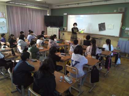朝読書の時間に、図書ボランティアさんによる読み聞かせをしていただきました。季節柄、ハロウィーンの由来についてのお話でした。初めはカブを使っていたところから、アメリカではかぼちゃを使い始めたということを初めて知った子ども達もいました。
