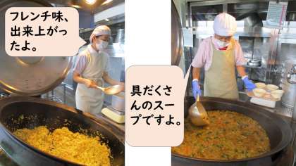 スープは野菜がたっぷり入っていて、彩りや食感を楽しんで食べていました。 なんと、全校で残菜がゼロでした。1年生も少しずつ食べる力がついてきましたよ。