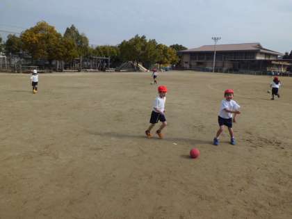 1年生は,体育ではボールけりゲームの学習をしています。