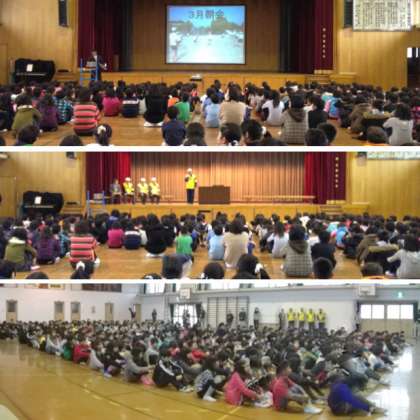 3月の朝会,そして,小学校生活最後の朝会でした。