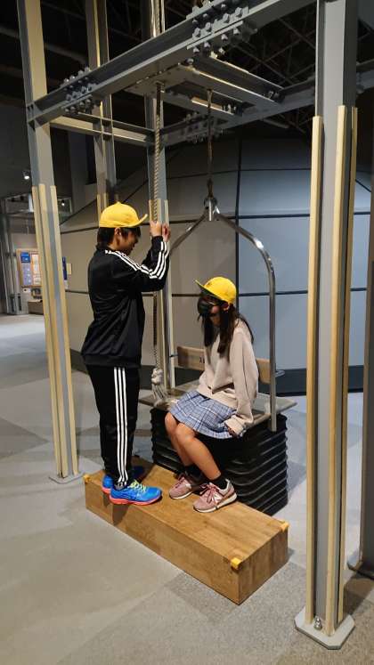 人力エレベーターは二人座っても3つの滑車を使って軽々持ち上げることが出来ます。