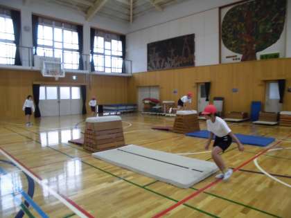 今日は3年生はじめてのとび箱運動でした。2年生で学習した技と新しい技に取り組みました。