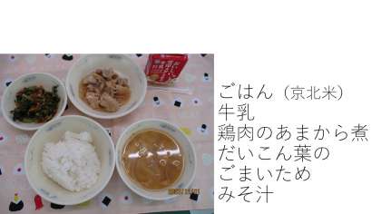 今日から12月。今月の給食目標は「いろいろな国の食べ物を知ろう」です。インドのカレーやイタリアのミネストローネ、フランスのシチューなど、給食ではいろいろな国の料理が登場します。そして、和食も。今日は和食を味わって食べました。みそ汁のだしのうま味も最高ですね。