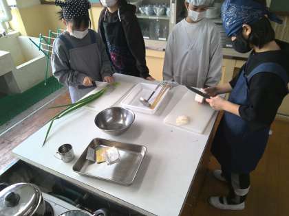家庭科の学習でみそ汁の調理実習を行いました。だしの授業で学んだことも生かして、今回は煮干しからだしを取りました。煮干しの頭やはらわたを取ってだしを取ったり、野菜の準備をしたりするのも、ずいぶん手際よくなってきました。
