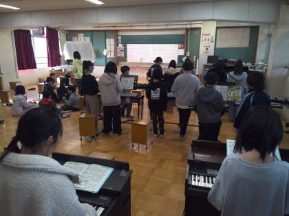5年生の音楽の学習で、キリマンジャロの合奏に取り組みました。それぞれの楽器がお互いの音を聞き合い、だんだんと音を合わせることができるようになってきました。合奏の楽しさを感じることができました。
