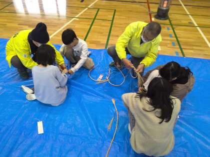 社会福祉協議会の皆様にご準備していただき、しめ縄作り体験を行いました。