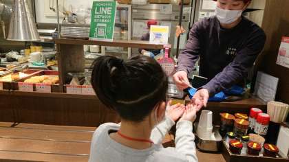 地下鉄に乗ってモモテラスに来ました。フードコートで自分の好きなものを選んで自分で注文してお金を払って、自分の席まで運びます。どれも美味しそうで、お腹いっぱいになりました。