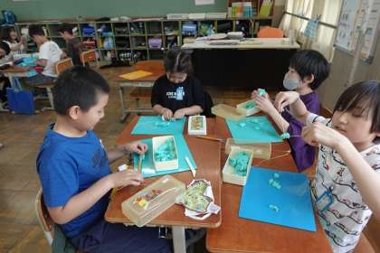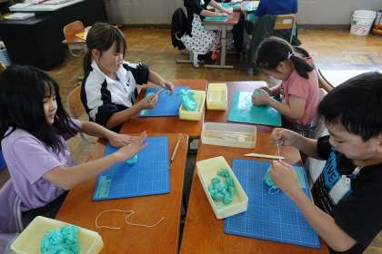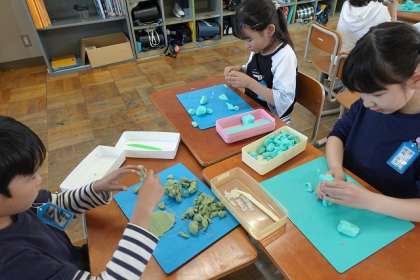 切って、かきだして、くっつけての粘土の学習をしました。