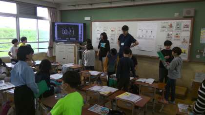 好きな教科などを相手に尋ねたり、伝えたりする活動を通して発音を練習しました。「○○って英語でなんて言うんだっけ。」と積極的に外国語活動に取り組む姿が見られました。