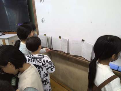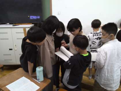5年生で、どのような自主学習に取り組んでいるかを交流しました。お互いのノートや6年生のノートも参考にしながら、これからのノートづくりに生かしてほしいと思います。