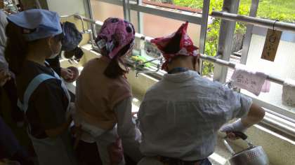 初めての調理実習、お茶いれを体験しました。お茶の入れ方やガスコンロの使い方を学習し、班で協力して準備を進めました。