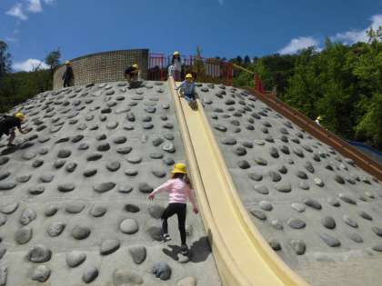 宝が池公園では、1・2年のなかよしグループで遊具遊びを