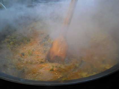 写真は,給食室のお釜で仕上げているところです。