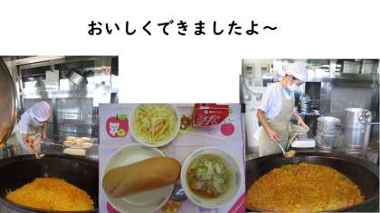 今日の献立は、コッペパン・牛乳・肉団子のスープ煮・じゃがいものいためものです。