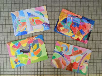 完成した作品はどれも線や色がちがい,個性があふれるものになりました!