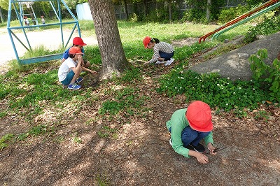 「ここがすみか」では、運動場ですみっこを探して、そこにおうちを作っています。