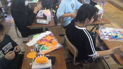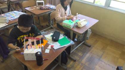 おもしろい仕掛けで動く「くるくるクランク」が完成しました。子どもたちがそれぞれ考えた素敵な動きをまた是非見てあげてください。