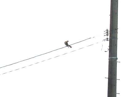 「チョウゲンボウ」と思しき鳥が,縄張り争いなのか,我が身を守ろうとしているのか「カラス」と空中戦を繰り広げていました。写真がシルエットになって判別しにくいのですが,猛禽類には間違いありません。