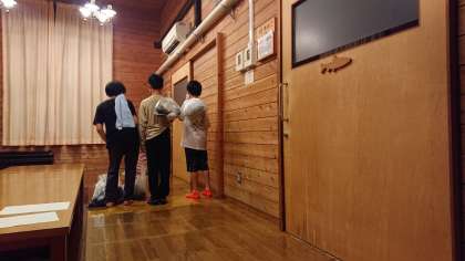 いっぱい活動していっぱい汗をかいたので、お風呂でさっぱりしました。大きなお風呂にみんなで入れてとても楽しかったそうです。