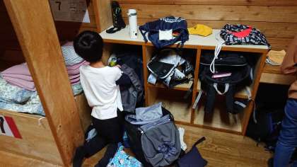 二日目の朝が始まりました。昨日、とてもがんばったので、消灯時間と同時に爆睡でした。朝も放送がなるまでしっかり眠りました。今日はこの後、他の学校と合同の朝の集いがあります。