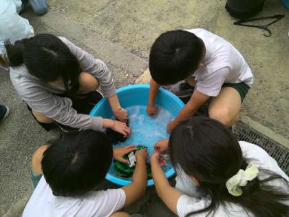 家庭科の学習で洗濯実習を行いました。洗濯物の量によって水や洗剤の量が変わることを学んだ子ども達でしたが、使う洗剤の量は思った以上に少ないと感じた子が多かったようです。